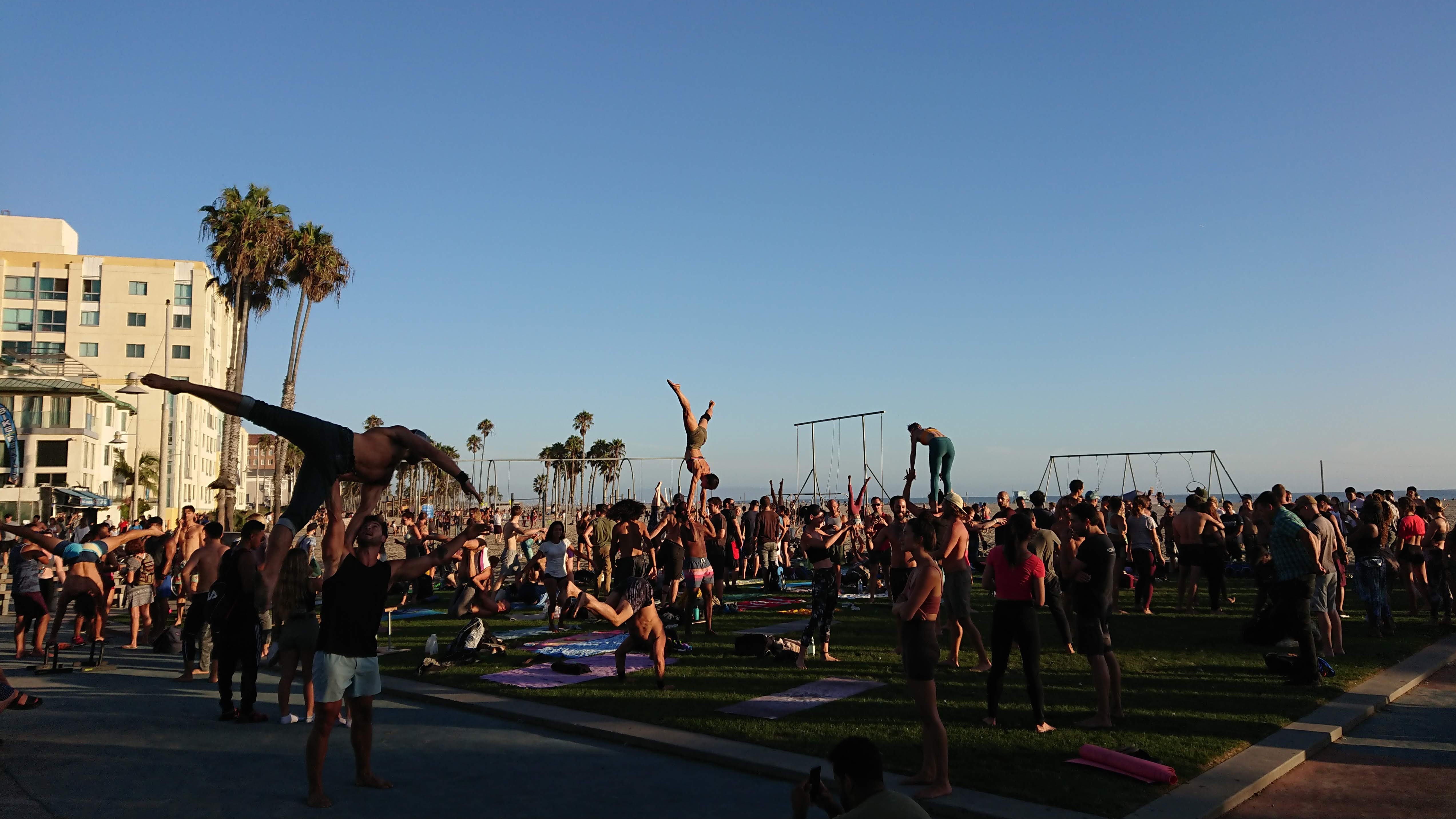 Pobliskie Hollywood kręciło filmy, które miały odciągnąć widzów od trudów epoki. Na to jednak potrzeba było pieniędzy by kupować bilety, co w społeczeństwie bez pracy było trudne. Jak wiadomo gdy trzeba oszczędzać, wydatki na kulturę i rozrywkę odpadają najpierw. Do tego w roku 1933 w leżącym nieopodal mieście Long Beach, miało miejsce trzęsienie ziemi. Zniszczyło ono infrastrukturę, niejako zmuszając mieszkańców do znalezienia nowych miejsc na wypoczynek. To mniej więcej w tym czasie, niepopularny i jeszcze mały pas plaży Santa Monica stawał się coraz sławniejszy. To tutaj ludzie przychodzili spędzać czas wolny, gdzie za darmo, w sprzyjających warunkach, mogli obserwować kaskaderów, akrobatów i zapaśników. Ćwiczyli oni na plaży do swoich ról, występów i zawodów sportowych. Wielu ze sportowców trenowało również w kontekście Letnich Igrzysk Olimpijskich, których gospodarzem w 1932 roku było Los Angeles (Igrzyska w 1984 roku, również odbyły się w tym mieście).